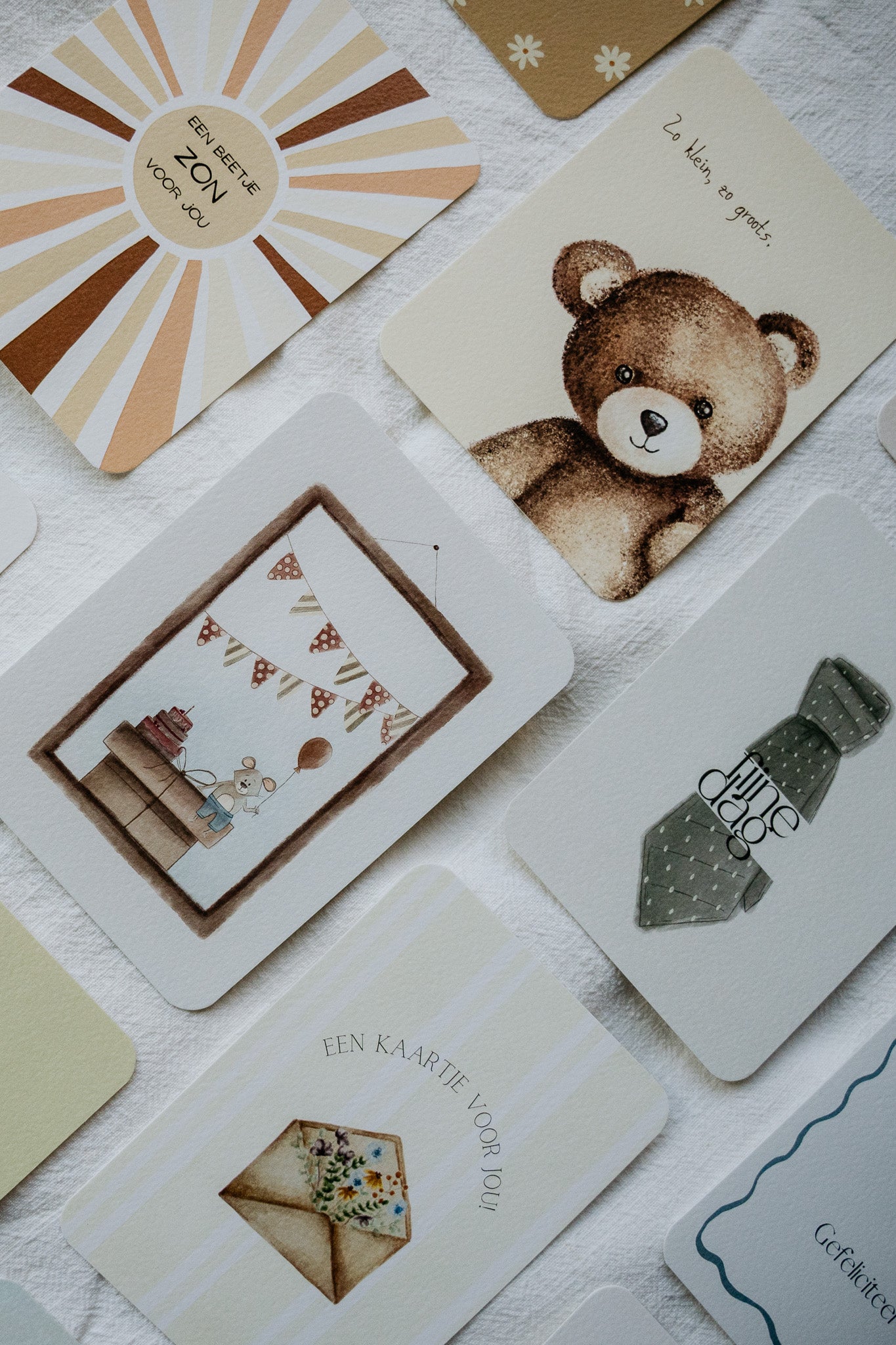 Of je nu een kaart zoekt om iemand te feliciteren, een hart onder de riem te steken of gewoon een klein gebaar te maken, bij Studio Vlinn vind je altijd iets bijzonders om te sturen of te bewaren.